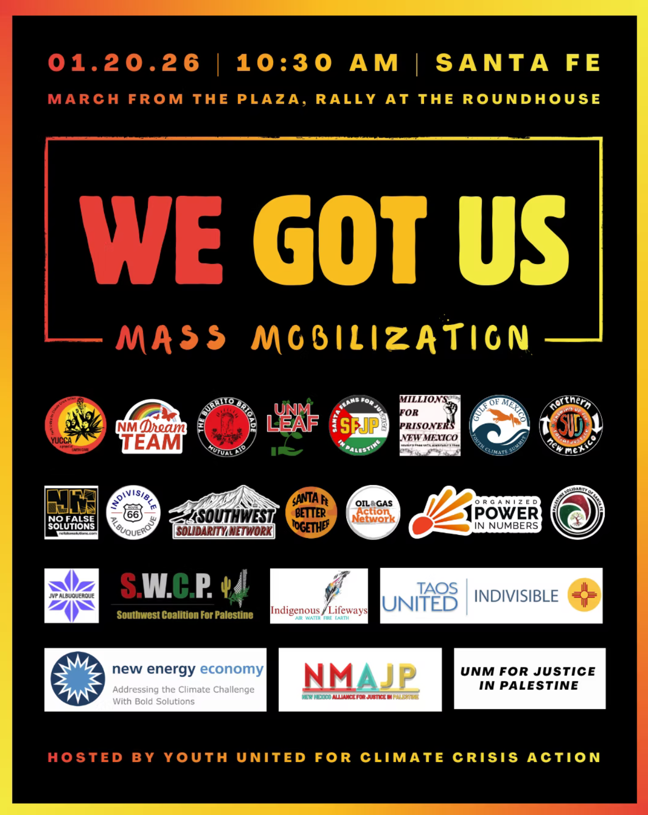 Join the We Got Us Mass Mobilization where thousands of New Mexicans will march on the State Capitol to show the State what it looks like when New Mexico’s movements move together as one.