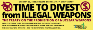 On Thursday, January 22th, the world and New Mexicans will mark five years since the Treaty on the Prohibition of Nuclear Weapons became international law. Nuclear weapons are now illegal. https://disarmament.unoda.org/en/our-work/weapons-mass-destruction/nuclear-weapons/treaty-prohibition-nuclear-weapons